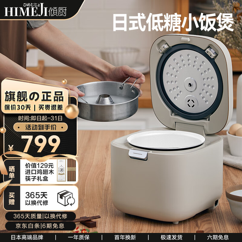 倾厨 日本低糖电饭煲电饭锅米汤分离智能降低淀粉 小型家用多功能2-3人迷你电饭煲可定时 原木杏白【濑户烧陶瓷釉内胆】价格:999.00元!
