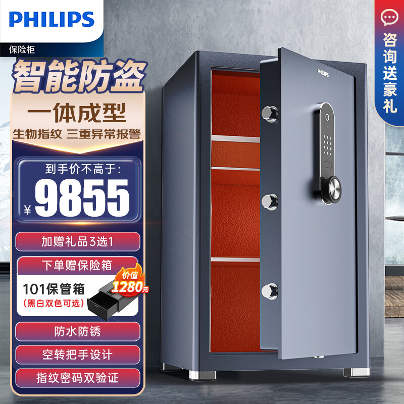 飞利浦保险柜家用办公 指纹密码双识别 3C新国标认证 一体成型可入墙保险箱SBX601高88CM(淡雅蓝)价格:9855.00元!
