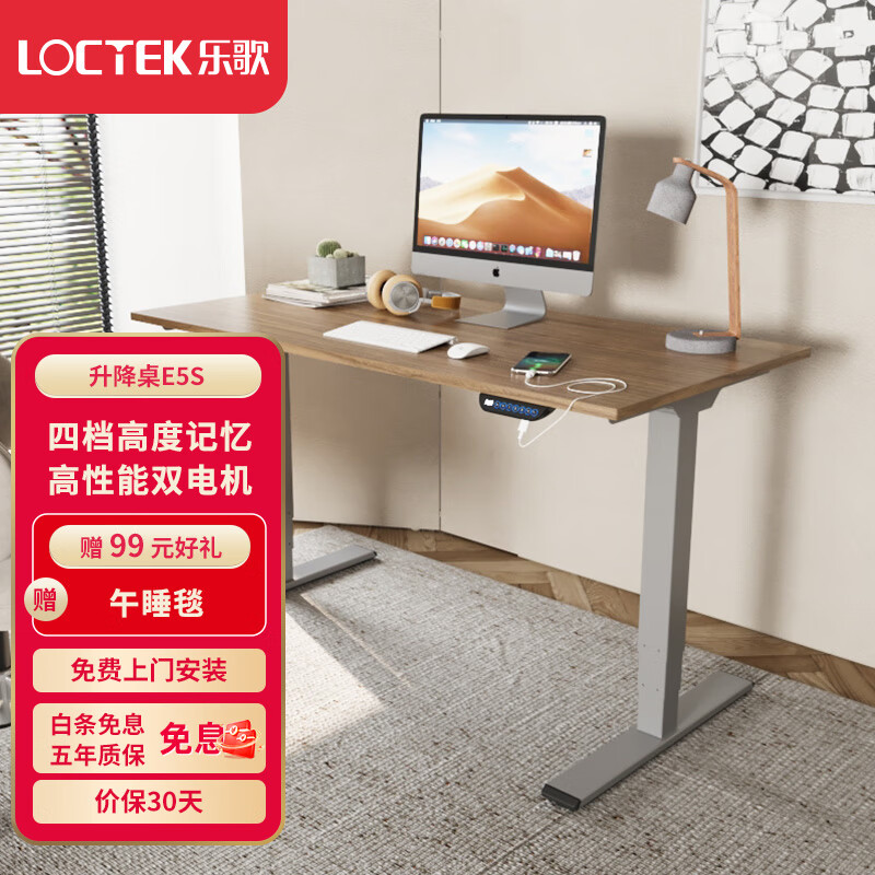 乐歌电动升降桌电脑桌站立办公学习桌书桌 E5S/1.6m黑胡桃木色套装价格:3659.00元!
