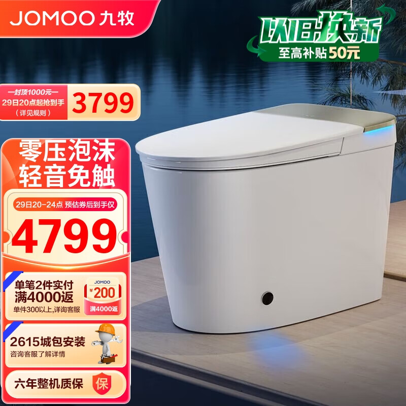 九牧(JOMOO)无水压限制智能马桶魔力泡低音冲自动翻盖坐便器ZS770P 305坑距价格:6294.00元!