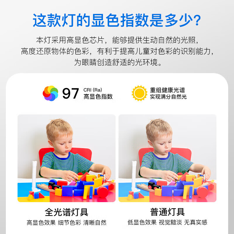 2、全光谱-高显色光源,更接近自然光;防蓝光,无频闪,更好的保护眼睛。白光-中性光-暖光三色可调,满足日常需求。超薄设计,更精致;用料扎实,更耐用。