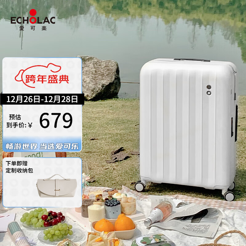 爱可乐(Echolac)万向轮行李箱大容量旅行箱防刮密码锁箱旅游托运箱PC232 白色24吋价格:799.00元!
