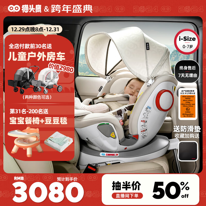 猫头鹰(SAVILE)儿童座椅0-4-7岁360度旋转isofix硬接口M178C妙转PRO+ 银白价格:3080.00元!