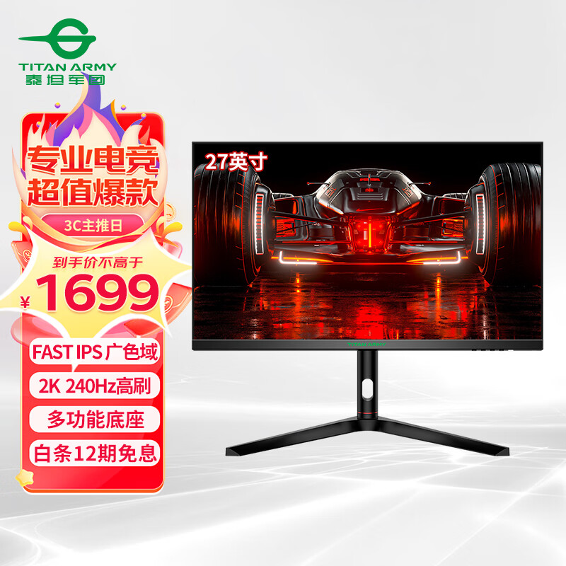 泰坦军团 27英寸 2K 240Hz FAST IPS 1ms(GTG)广色域 A-Sync技术 HDR 升降旋转 电脑屏幕电竞显示器 P27B2S价格:1999.00元!