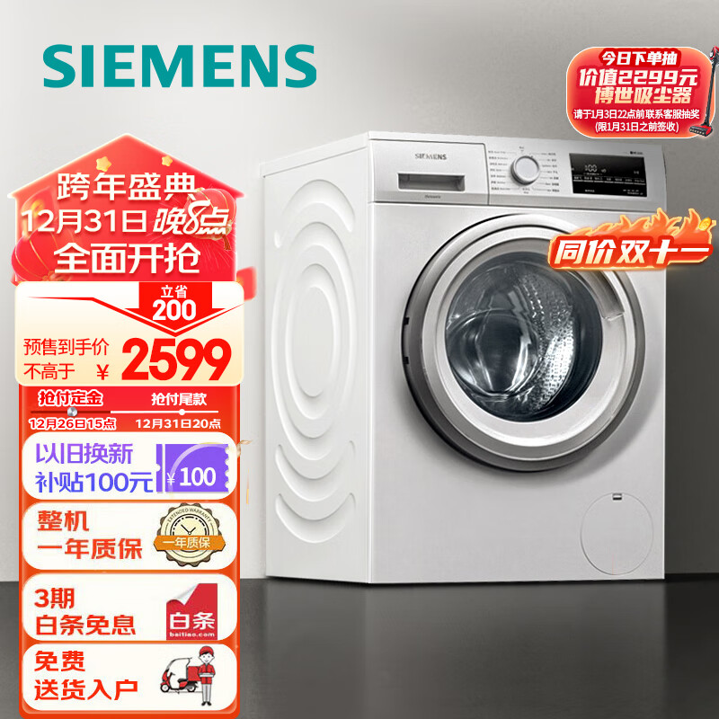 西门子(SIEMENS) 9公斤滚筒洗衣机全自动 BLDC变频电机 99.9%除菌 专业羽绒洗 XQG90-WG42A2Z01W价格:2799.00元!