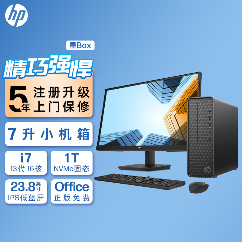 惠普HP 星Box高性能商务办公台式电脑主机(13代i7-13700 16G 1TB大容量固态硬盘 WiFi 注册五年上门)23.8英寸价格:5599.00元!