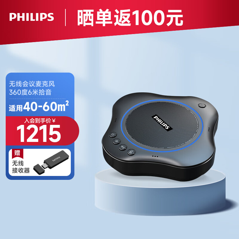 飞利浦视频会议全向麦克风 6米拾音半径会议麦克风 无线音箱桌面扬声器(适用40-60㎡)解决方案带电池0500PLUS价格:1350.00元!