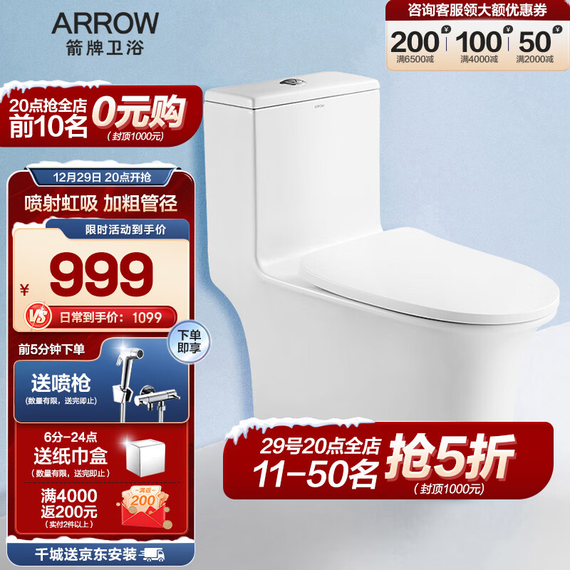 箭牌(ARROW)抽水马桶家用卫浴虹吸坐便器普通座便节水坐厕 1级水效AEB12617M价格:1239.00元!