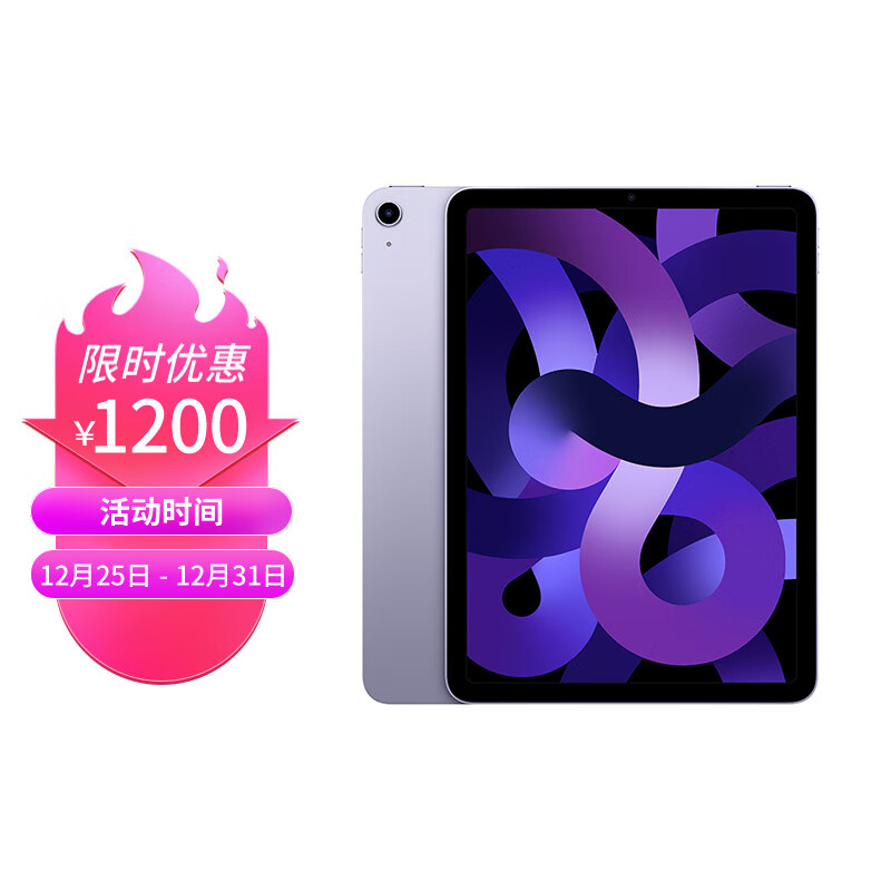 Apple iPad Air 10.9英寸平板电脑 2022年款 第5代(256GB WLAN版/M1芯片/MME63CH/A)紫色价格:4799.00元!
