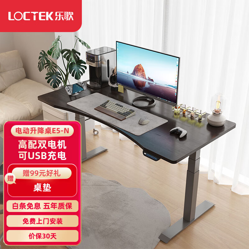 乐歌电动升降桌电脑桌站立办公学习桌 E5-N/1.6m 凹型实木黑胡桃木色价格:3529.00元!