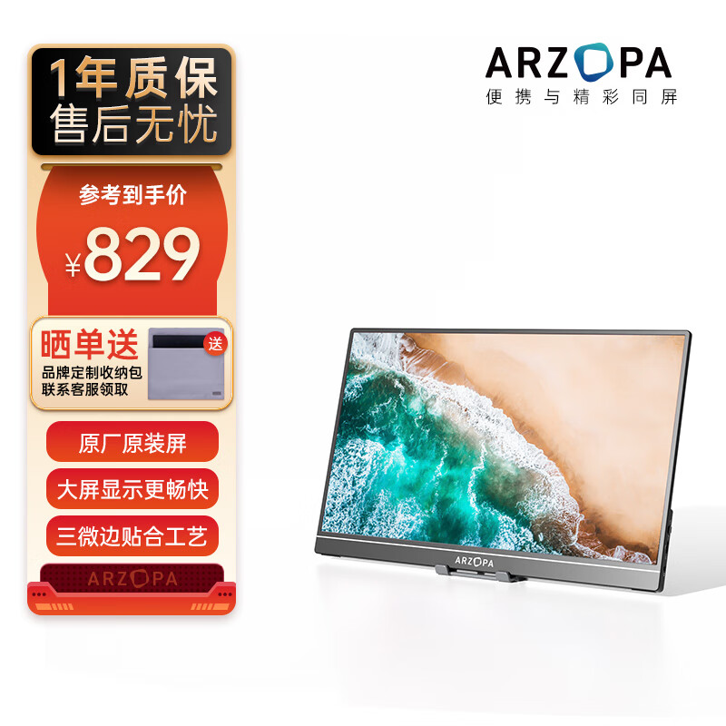 ARZOPA 17.3英寸便携式显示器 三面微边 蓝光护眼 IPS 手机电脑笔记本扩展屏 PS4/5 Switch副屏显示屏 A1 MAX价格:859.00元!