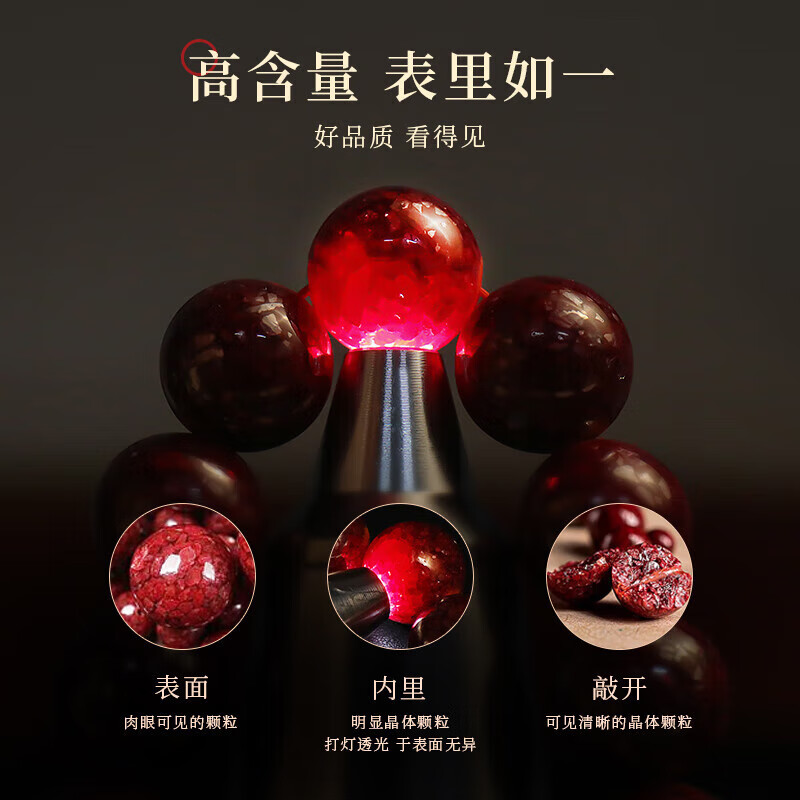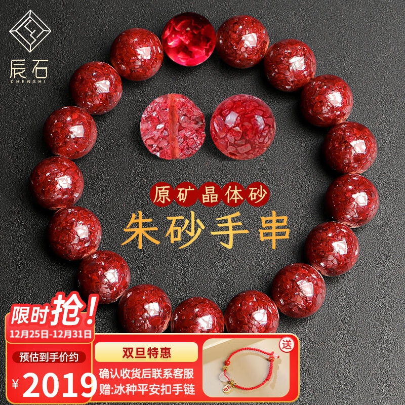 辰石朱砂手串男女款原矿颗粒透光晶体砂朱砂手链 本命年手串 16mm【新年礼物】价格:2299.00元!