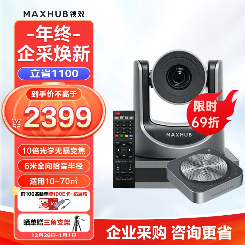 MAXHUB视频会议设备全套系统套装 解决方案1080P 10倍光学变焦会议摄像头SC51S+全向麦克风BM31拾音半径6米价格:2399.00元!