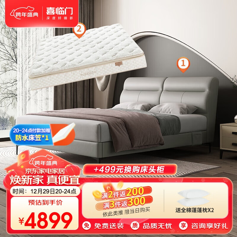 喜临门现代简约皮床 3cm乳胶独袋弹簧床垫 夜曲S+舒缦3.0 1.5*2米价格:6999.00元!