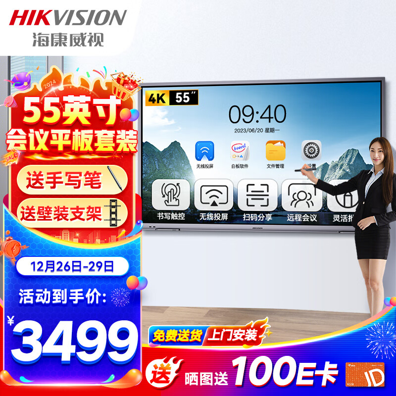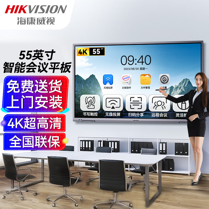 海康威视会议平板触摸一体机电子白板智慧屏55英寸4K超高清远程视频教学办公多媒体培训DS-D5B55RO/C价格:3499.00元!