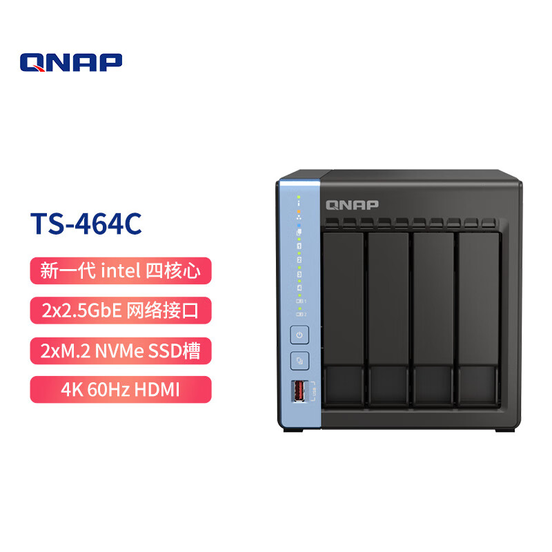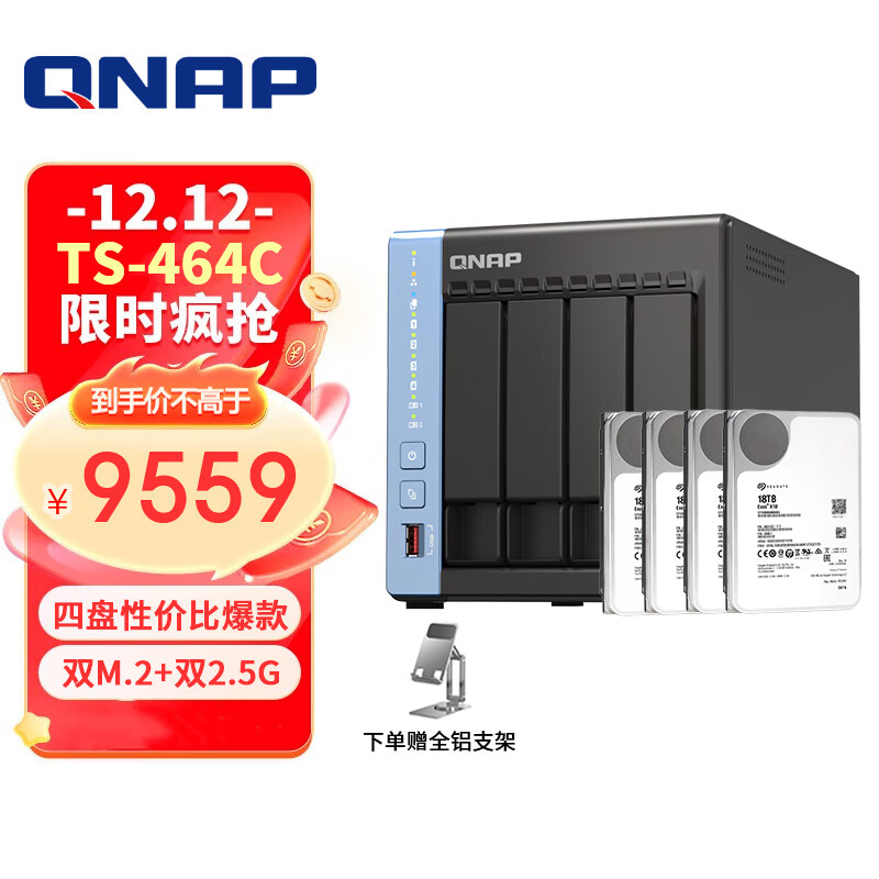 威联通(QNAP)TS-464C 魔方 四核心处理器网络存储服务器内置双M.2插槽NAS(含企业盘18T*4)价格:10999.00元!