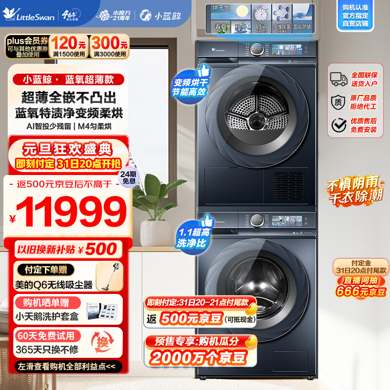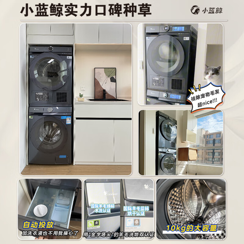 小天鹅(LittleSwan)洗烘套装 10KG滚筒洗衣机全自动+变频热泵烘干机 本色蓝氧 超薄全嵌【小蓝鲸】TG100V88PLUS+VH88价格:12498.00元!