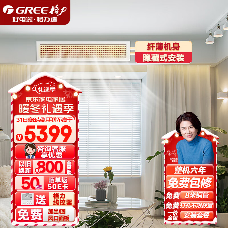 格力(GREE)中央空调 风管机一拖一 1.5匹家用嵌入式空调 直流变频FGR3.5Pd/C3Nha-N3 京仓派送(一价全包)价格:5399.00元!