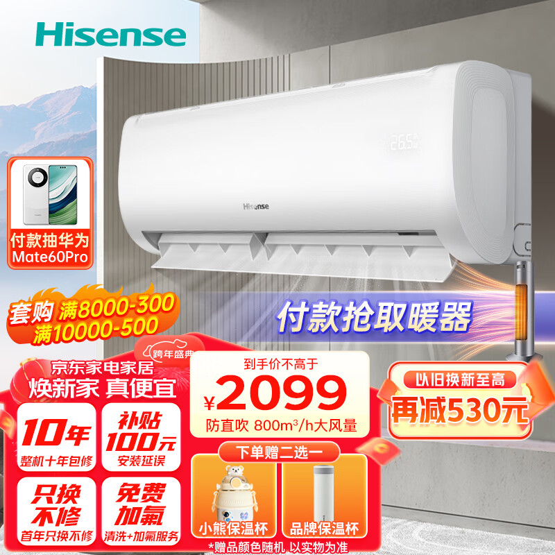 海信空调1.5匹挂机新一级能效变频大风量速冷暖APP智能防直吹卧室壁挂式空调KFR-35GW/E370-X1以旧换新价格:2199.00元!