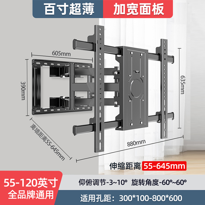 幕后英雄 大屏电视伸缩挂架55-120英寸通用电视支架壁挂墙架子适用小米海信TCL等价格:729.00元!