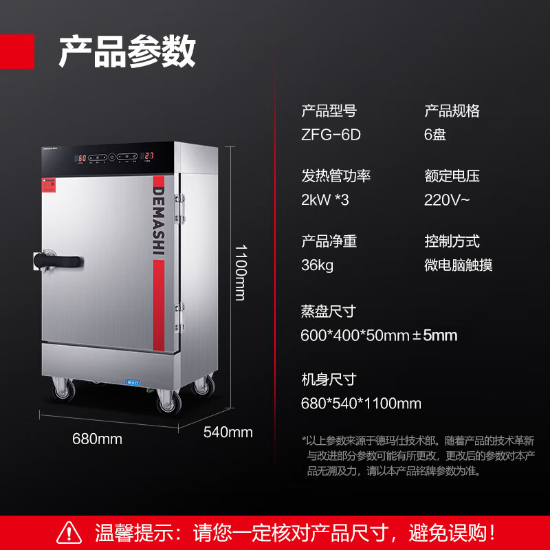 德玛仕蒸饭柜商用蒸饭车蒸炉蒸饭机电蒸箱小型蒸箱蒸饭器食堂酒店餐厅蒸菜工厂企业单位学校饭堂防干烧 大6盘定时款防干烧60-100人|无孔价格:2348.00元!