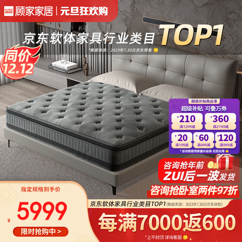 顾家家居(KUKA)席梦思床垫弹簧床垫M1082夺冠1号垫+【暮岩灰】8071皮床 1.8米价格:5999.00元!