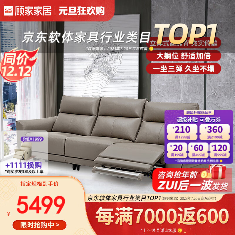 顾家家居头层牛皮现代高脚电动功能沙发客厅家具6055灰3双左电动价格:5499.00元!