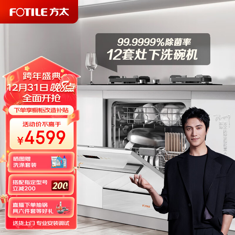 方太(FOTILE)洗碗机嵌入式家用 高能气泡洗 12套大容量 灶下洗碗机 一级水效 30min超快洗02-N1价格:4599.00元!