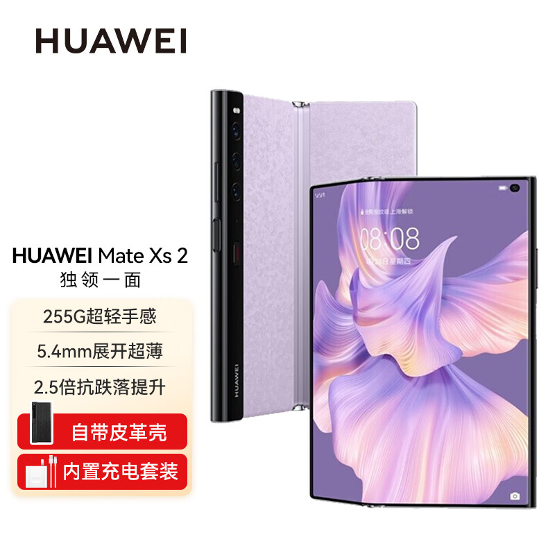 华为/HUAWEI Mate Xs 2 升级支持北斗卫星消息 超轻薄超平整超可靠 8GB+512GB霜紫折叠屏手机价格:10499.00元!