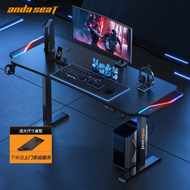 andaseaT安德斯特电脑桌游戏桌电竞台式家用桌未来战士带灯电动升降1.4米价格:2199.00元!