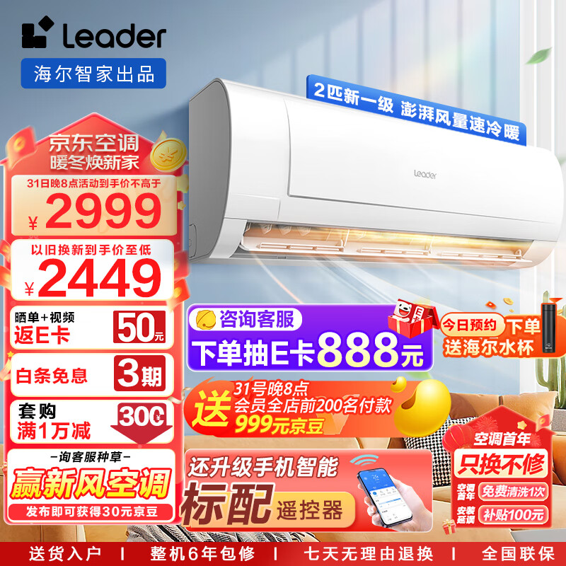 Leader空调 海尔智家出品 2匹新一级客厅变频空调挂式 自清洁空调挂机 KFR-50GW/18MDA81TU1价格:3169.00元!