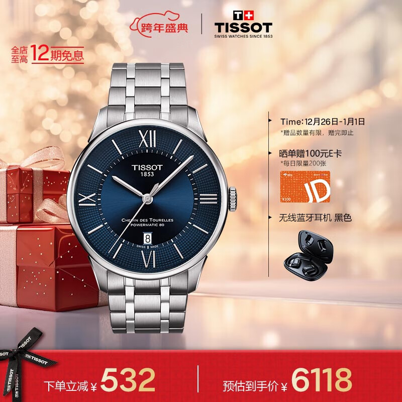 天梭(TISSOT)瑞士手表 杜鲁尔系列机械男表 新年礼物送男友T099.407.11.048.00价格:6650.00元!