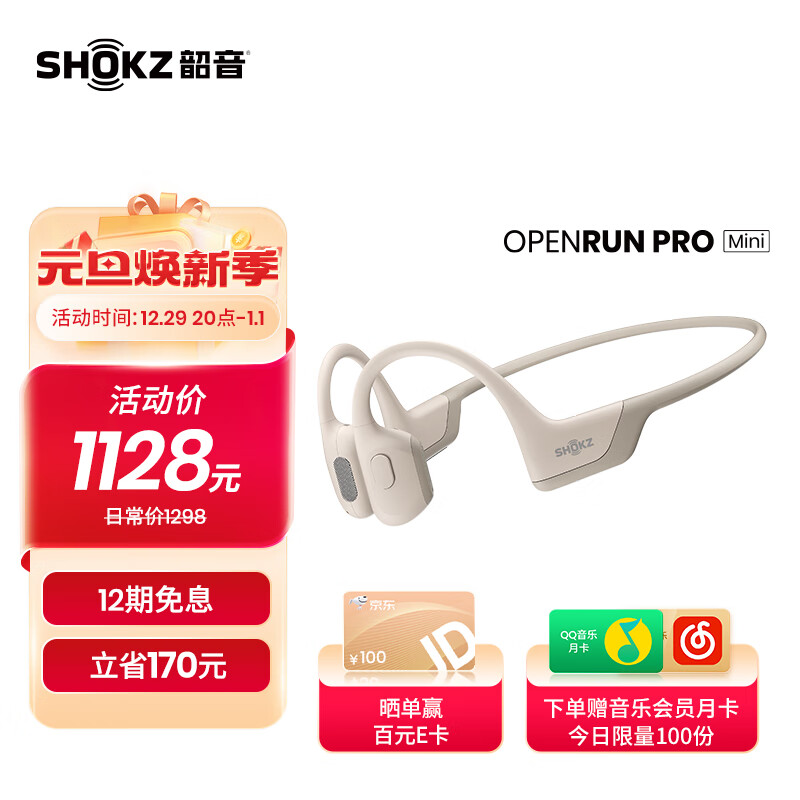 韶音(SHOKZ)OpenRun Pro骨传导蓝牙无线开放式耳机耳麦 不入耳式运动高音质 低频增强S810 Mini版沙漠黄价格:1128.00元!