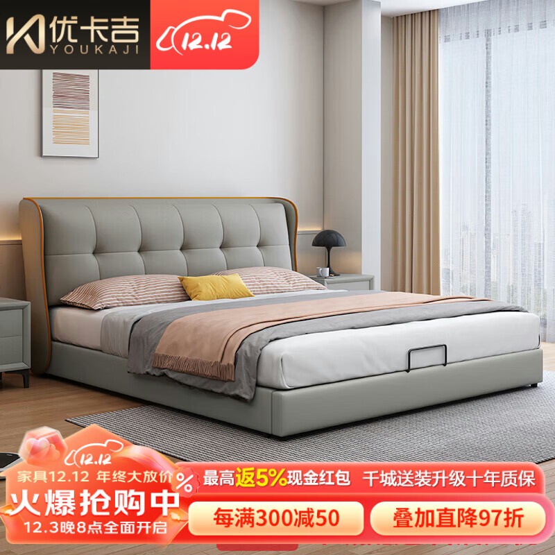 优卡吉猫抓皮床现代双人储物软包大床LP-678# 1.8米气压床+床垫+柜*2价格:3099.00元!