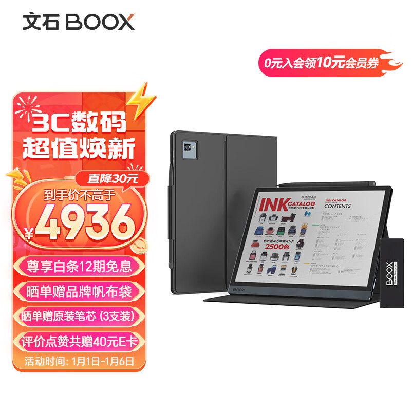 文石BOOX Tab10C Pro 10.3英寸电子书阅读器平板 彩色墨水屏电纸书 大屏智能办公阅读 笔芯+磁吸保护套套装价格:4936.00元!