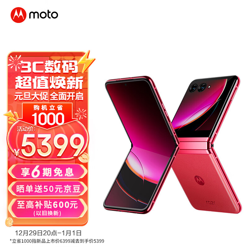 摩托罗拉moto razr 40 Ultra 掌心巨幕 外屏海量应用 无线充电 骁龙8+ 5G折叠屏旗舰手机 12GB+512GB非凡洋红价格:6399.00元!