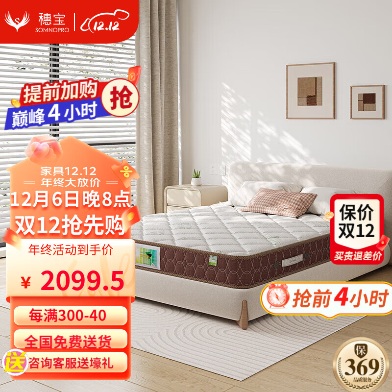 穗宝(SYMBOL)床垫床护垫套餐亲爱嘚山棕床垫150*200+超声波床护垫150x200价格:2619.00元!