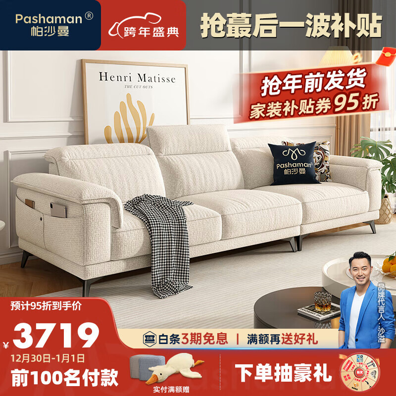 帕沙曼(pashaman)布艺沙发 棉麻客厅现代小户型高靠背直排沙发奶油风 3.1米 1018FZ价格:5095.00元!