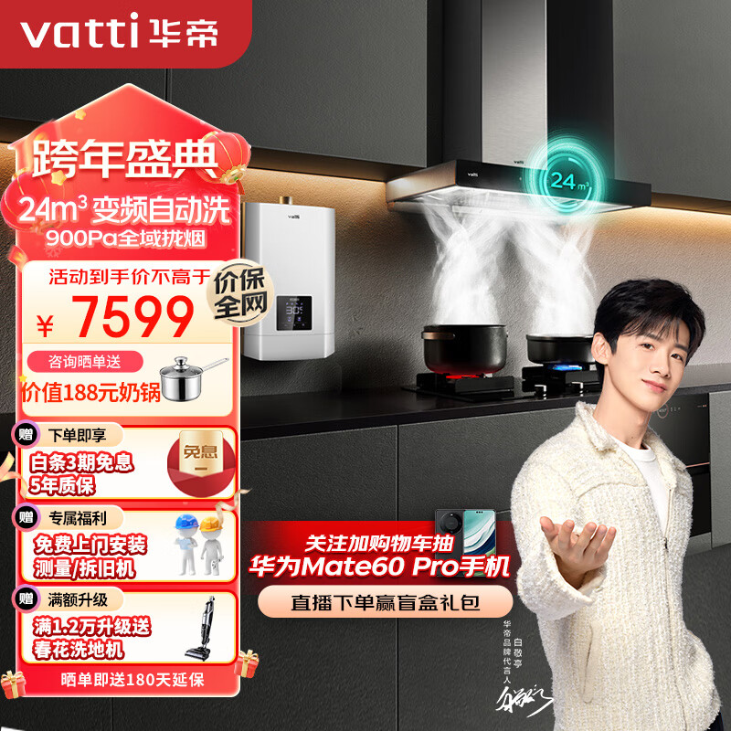 华帝(VATTI)抽油烟机燃气灶具热水器消毒柜套装 家用厨房多件套 i11208+62B+37-16+3036(天然气)价格:7599.00元!