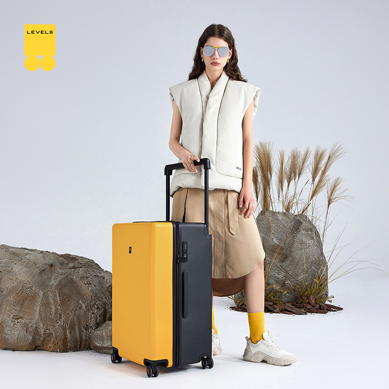 地平线8号(LEVEL8)行李箱男女密码万向轮拉杆箱 大旅行家24英寸宽拉杆PC箱 黑黄拼色价格:1299.00元!
