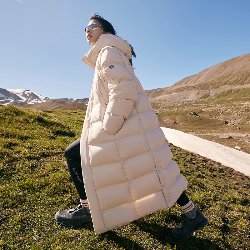 KOLON SPORT可隆情侣款户外防风长款重量鹅绒夹克羽绒服 杏色PE S价格:3600.00元!