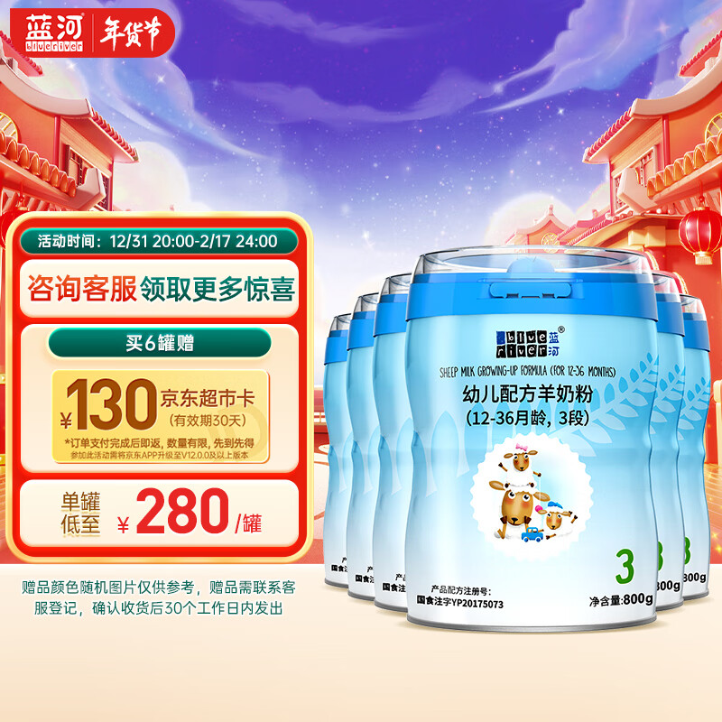 蓝河(blue river)绵羊奶粉3段幼儿配方奶粉1-3岁800g*6罐装 新西兰原装进口价格:2298.00元!
