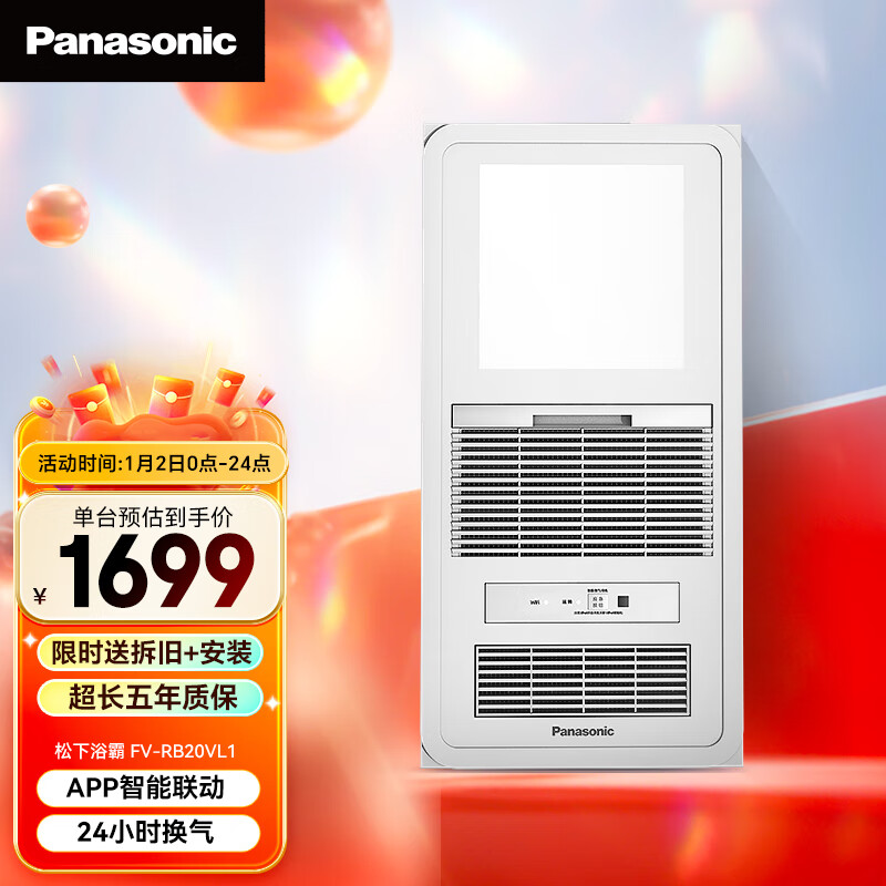松下(Panasonic)FV-RB20VL1 浴霸风暖排气扇照明一体通用吊顶式浴室换气暖风机价格:1999.00元!