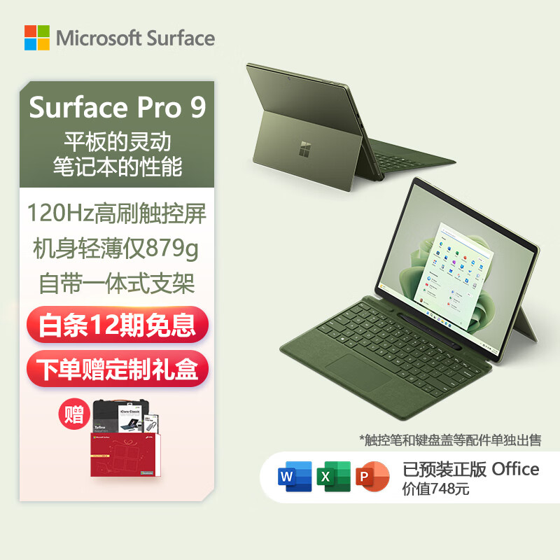 微软Surface Pro 9 二合一平板电脑 i5 16G+256G森野绿 13英寸120Hz触控屏 笔记本电脑轻薄本价格:10588.00元!