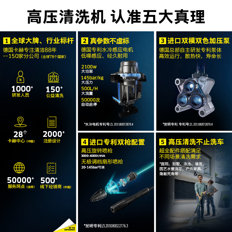 KARCHER德国卡赫家用洗车机高压水枪清洗机220V庭院清洗原装进口K5C标准价格:3699.00元!