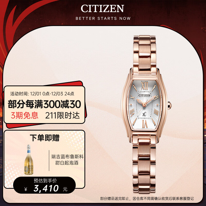 西铁城(CITIZEN)手表女日韩表xC系列光动能方盘钢带时尚送礼物EW5543-54A价格:3780.00元!