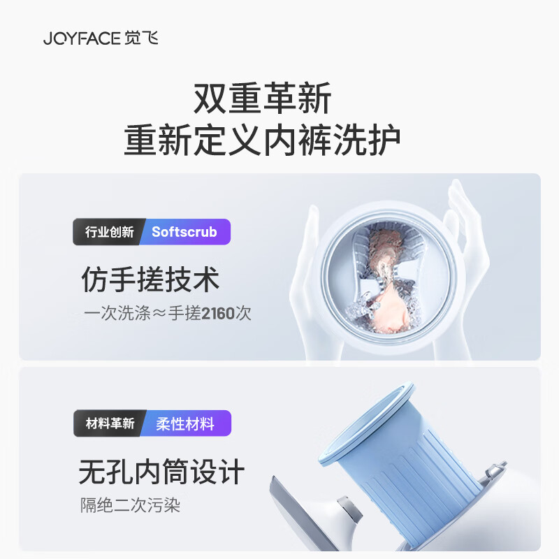 觉飞(JOYFACE)心愿S内衣裤洗衣机专用小型迷你全自动高温杀菌除菌煮清洗袜子 云雾白家庭版+心煦烘干机智能版价格:1999.00元!