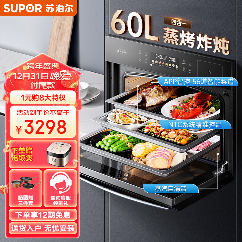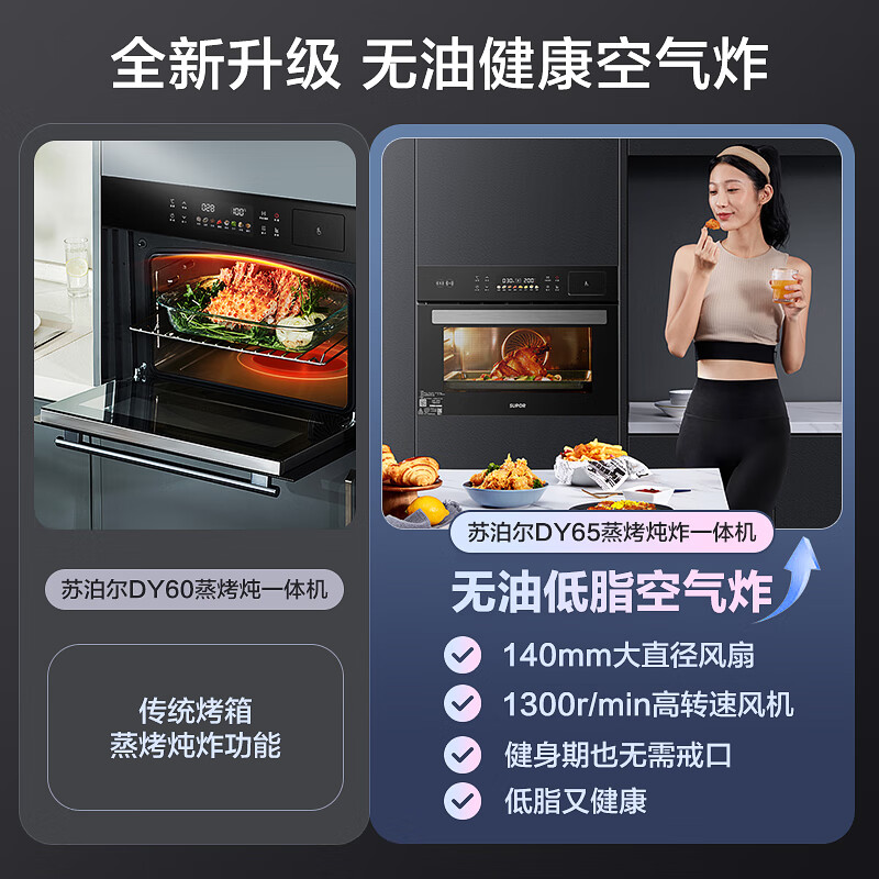 苏泊尔(SUPOR)嵌入式蒸烤炖炸一体机家用智能多功能蒸箱烤箱炖煮空气炸4合1 60LAPP操控 DY65蒸烤价格:3299.00元!