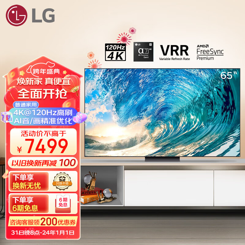 LG 65英寸 AI音画调节超薄大屏 4K超高清120Hz高刷游戏电视 影院还原AI智能电视 65QNED81CRA价格:7499.00元!