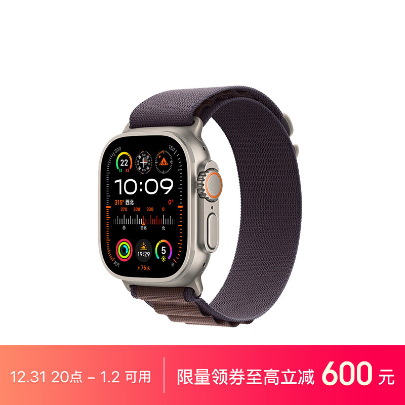 Apple Watch Ultra2 智能手表GPS + 蜂窝款49毫米钛金属表壳靛蓝色高山回环式表带中号eSIM健康手表MRFF3CH/A价格:6499.00元!